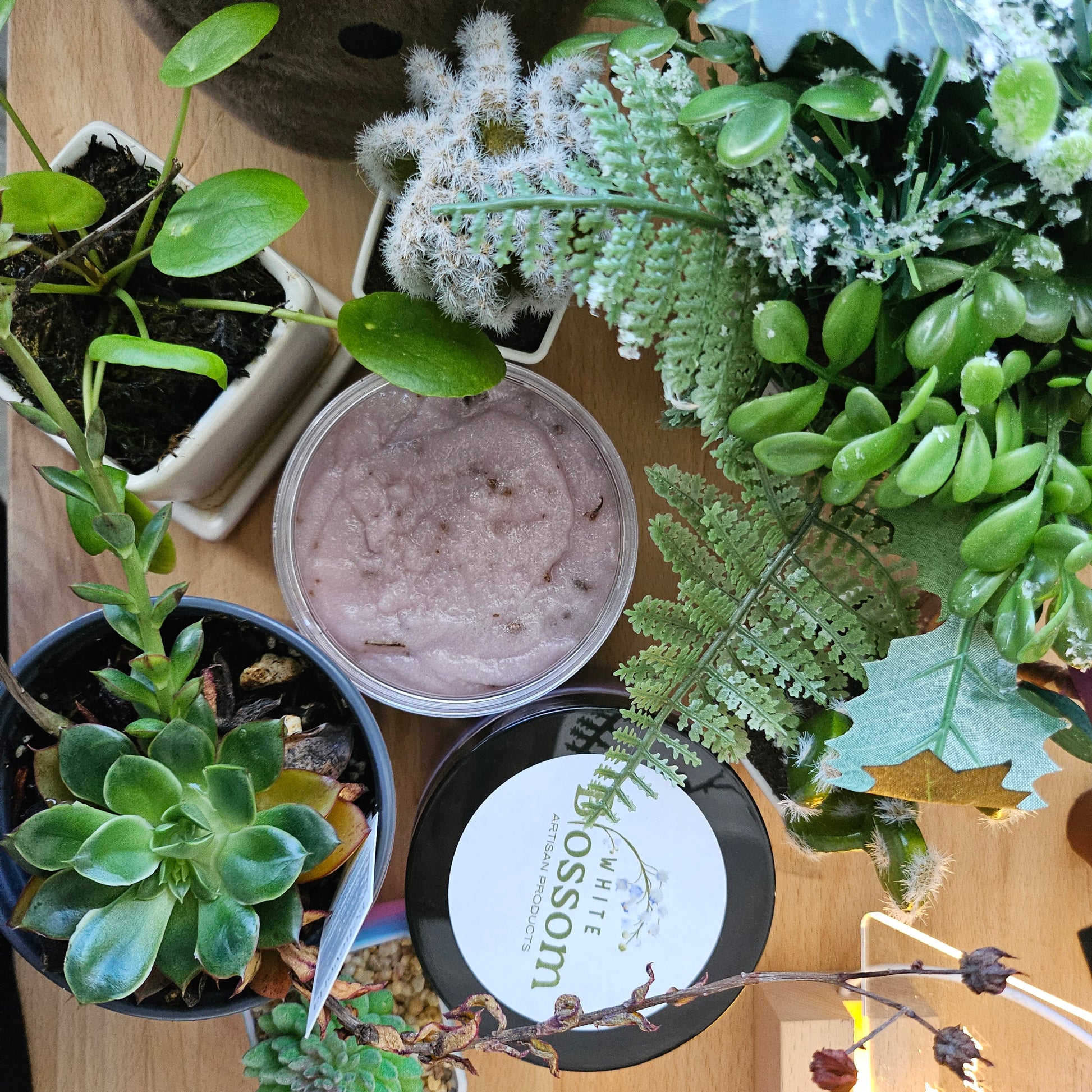 Made with Sugar, Coconut Oil, Lavender Petals, Castile Soap, Vanilla Extract, and Essential Oils